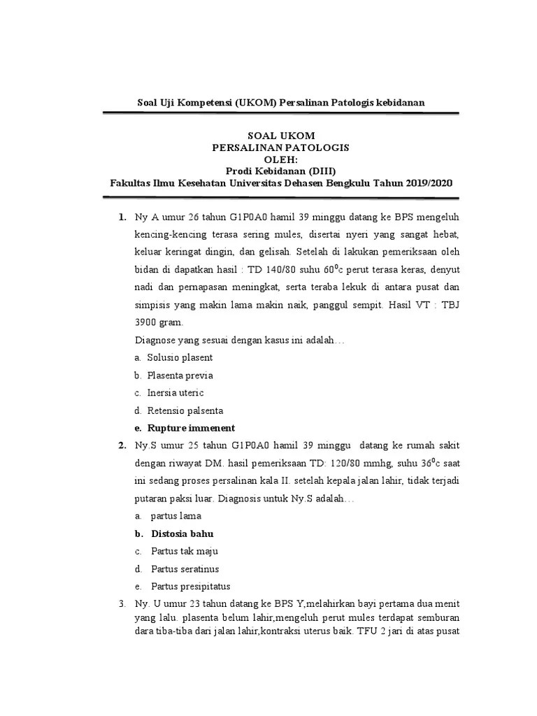 Soal uji kompetensi bidan 2018, 2019, 2020, 2021, 2022, 2023, 2024, 2025, 2026, 2027.